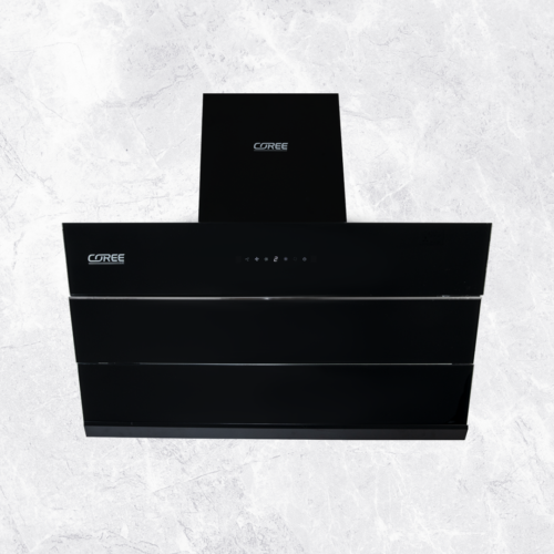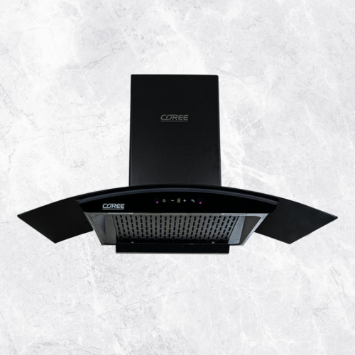 - 90 cm curved glass black finished chimney